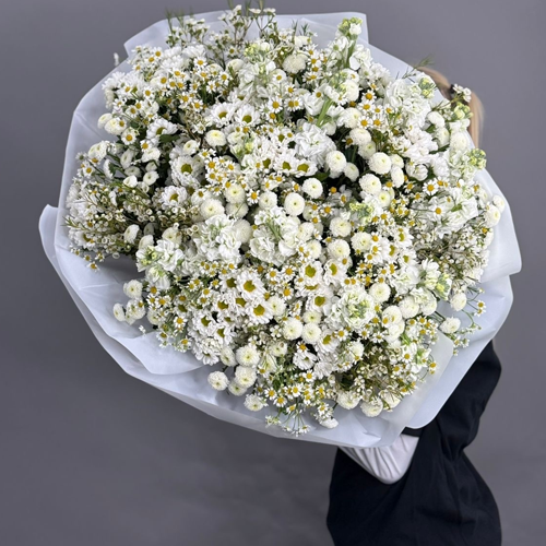 Букет "Эдем" из хризантем, маттиол и ромашек